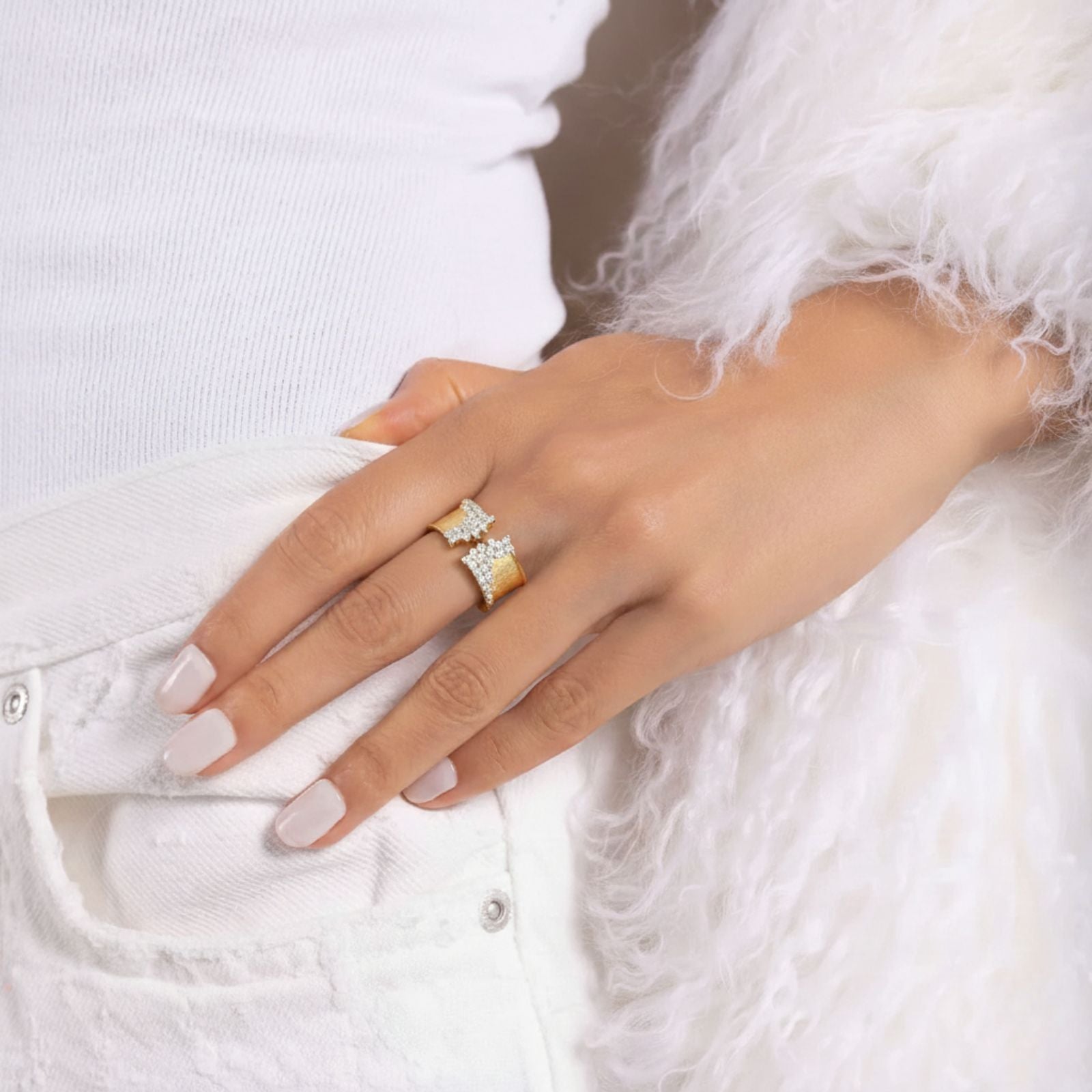 Make a statement with the Talia Diamond Sparkle Open Ring, designed for those who love a striking, stylish accessory. Crafted from durable stainless steel and copper with sparkling zircon accents, it is designed for everyday wear while remaining comfortable, long-lasting, and easy to style.